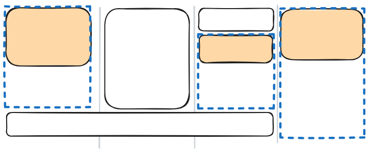 그리드 레인 레이아웃과 명시적으로 배치한 아이템을 함께 사용하면 이러한 1차원 그리드 레이아웃을 만들 수 있습니다.